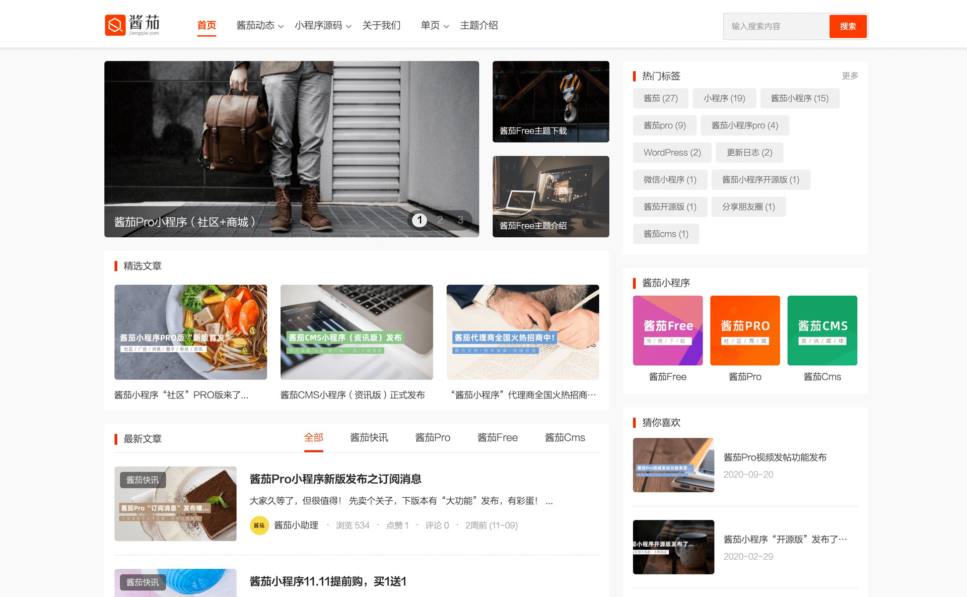 酱茄Free主题由酱茄大佬开发的一款免费开源的WordPress主题,主题专为WordPress博客、资讯、自媒体网站而设计。