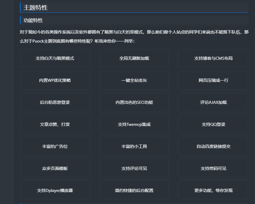 Github 开源项目地址:https://github.com/Licoy/wordpress-theme-puock