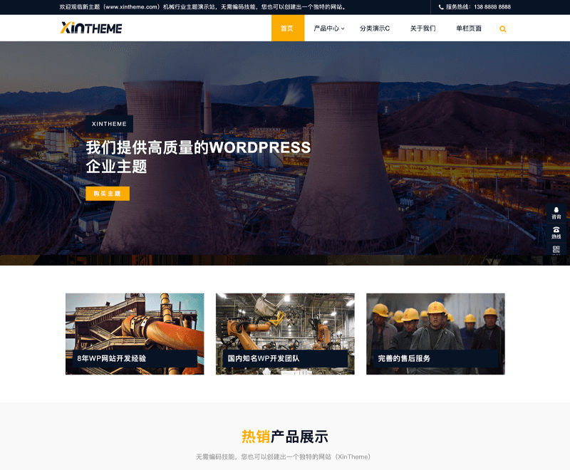 Factory主题是由XinTheme开发的一款高端大气且功能强大的wordpress企业主题,这款主题2020年12月26日正式上线,是大胡子博主年度鼎力之作!